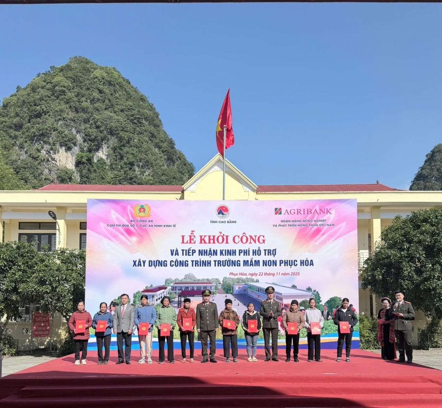 Vừa qua, Cụm thi đua số 1 Bộ Công an gồm các Cục: An ninh đối ngoại, An ninh nội địa, An ninh chính trị nội bộ, An ninh kinh tế và An ninh điều tra do Cục An ninh kinh tế chủ trì phối hợp với Ủy ban nhân dân tỉnh Cao Bằng và đơn vị tài trợ Ngân hàng Nông nghiệp và Phát triển Nông thôn Việt Nam (Agribank) tổ chức Lễ khởi công và tiếp nhận kinh phí hỗ trợ xây dựng Trường Mầm non Phục Hòa, xã Phục Hòa.