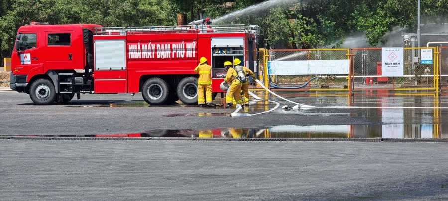 Tác phẩm: Đội bảo vệ ANDK sử dụng trang phục chữa cháy chuyên dụng, phối hợp cùng lực lượng chữa cháy chuyên ngành của nhà máy tổ chức diễn tập PCCC cấp 1 tại Trạm xuất NH3 – Xưởng Sản phẩm.