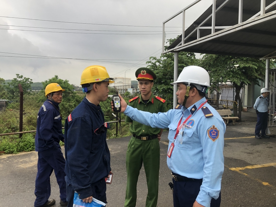 Tác phẩm: Hình ảnh kiểm tra, kiểm soát người và phương tiện vào Nhà máy Lọc dầu Dung Quất, thể hiện sự nghiêm túc, chặt chẽ trong công tác đảm bảo an ninh, an toàn, góp phần duy trì hoạt động ổn định và hiệu quả của nhà máy.