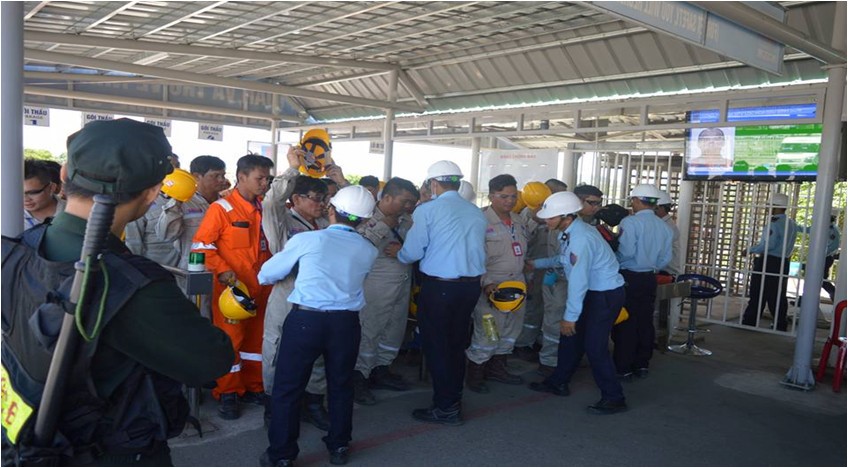 Nhân viên bảo vệ ANDK thực hiện kiểm tra nhân sự nhà thầu ra/vào làm việc tại Cổng A1 – Nhà máy Lọc dầu Dung Quất, bảo đảm tuân thủ nghiêm các quy định về an ninh, an toàn. Công tác kiểm soát được triển khai chặt chẽ, đúng quy trình, góp phần phòng ngừa rủi ro, giữ vững an ninh trật tự và bảo đảm hoạt động sản xuất của Nhà máy diễn ra liên tục, ổn định.