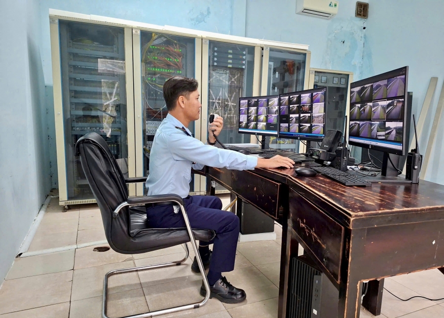 Nhân viên bảo vệ ANDK thực hiện theo dõi, giám sát chặt chẽ hệ thống camera an ninh tại NMLD Dung Quất, góp phần kiểm soát hiệu quả các khu vực trọng yếu, chủ động phòng ngừa rủi ro và bảo đảm an ninh, an toàn cho toàn bộ Nhà máy.