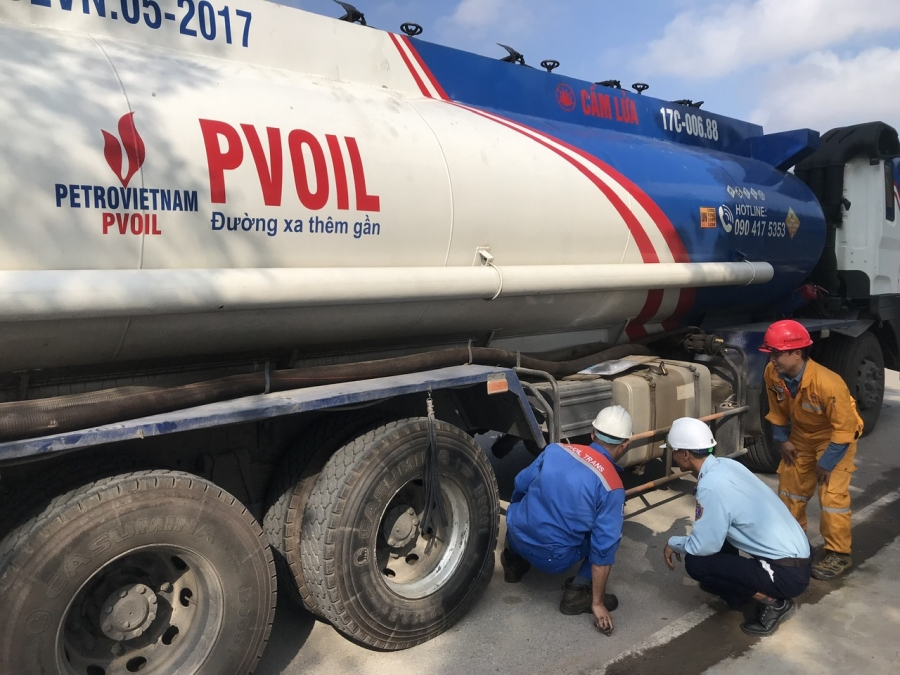 (Hình ảnh: Nhân viên bảo vệ phối hợp kiểm tra phương tiện chuyên dụng trước khi vào khu vực nạp khí ngưng tụ – Condensate).